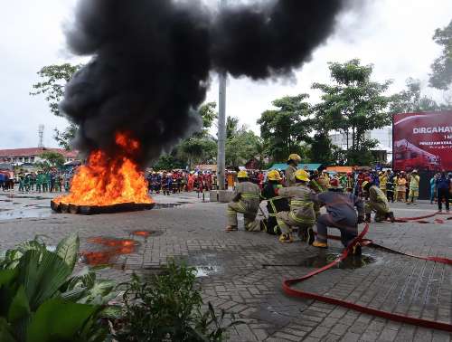 HUT Damkar di Banjarmasin dirangkai dengan apel. Kemudian, dilanjutkan dengan beberapa atraksi.