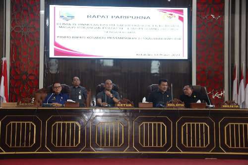 Paripurna tersebut bertempat di lantai III Gedung DPRD Kotabaru, Senin (18/3/2024) siang yang dipimpin oleh Ketua dihadiri Wakil Ketua dan Anggota DPRD Kotabaru, unsur Forkopimda, Asisten I Sekda, serta Kepala Organisasi Perangkat Daerah (OPD).