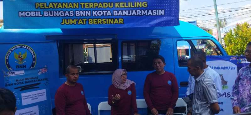 “Jadi pelayanan yang kita sediakan disebut Dilan (Digital Melayani Banjarmasin). Untuk masyarakat yang ingin membuat Surat Keterangan Hasil Pemeriksaan Narkotika (SKPHN), serta Permohonan Sosialisasi P4GN, dan informasi terkait rehabilitasi bisa langsung datang ke mobil Dilan ini, ” ucap Kepala BNN kota Banjarmasin.