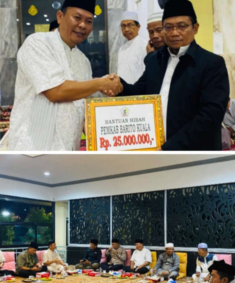 Sahur bersama itu Pj. Bupati sekaligus menyerahkan bantuan dana dari Pemkab Batola kepada panitia masjid sebesar 25 juta rupiah, dan
