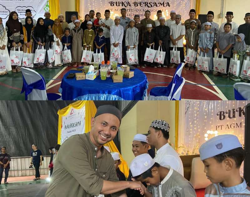 Dalam buka puasa bersama tersebut, PT AGM memberikan bingkisan dan santunan bagi 25 anak yatim yang diserahkan oleh Deputy Site Manager PT AGM Abdul Rahman, jajaran Manajemen PT AGM dan Forkopimcat.