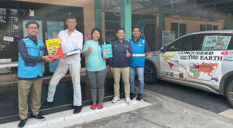 di PLN ULP Ahmad Yani Km 4,5 Banjarmasin, baru – baru tadi, kedatangan pasangan suami istri (pasutri), sang Penjelajah yang sedang keliling dunia menggunakan mobil listrik.