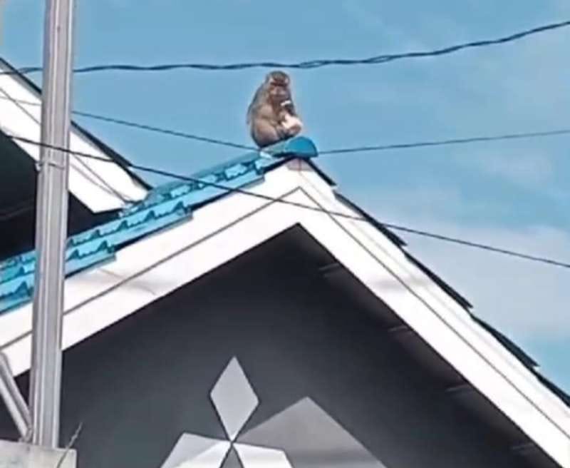 Terlihat video amatir warga ada sekitar empat ekor monyet berkeliaran di atas atap pemukiman warga setempat.