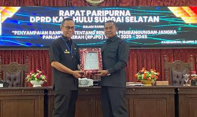 Ranperda RPJPD 2025-2045 disampaikan oleh Sekretaris Daerah (Sekda) Kabupaten Hulu Sungai Selatan (HSS) Muhammad Noor dalam rapat paripurna yang dipimpin Wakil Ketua I DPRD Kabupaten HSS Kartoyo.