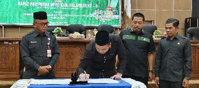 Raperda tersebut disetujui oleh seluruh anggota DPRD Balangan yang ditandai dengan ketukan palu oleh Ketua DPRD Balangan.Ahsani Fauzan.