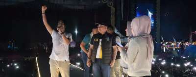 Ditengah kegirangan para penonton Carlie mengajak Bupati Kotabaru untuk bernyanyi bersama.