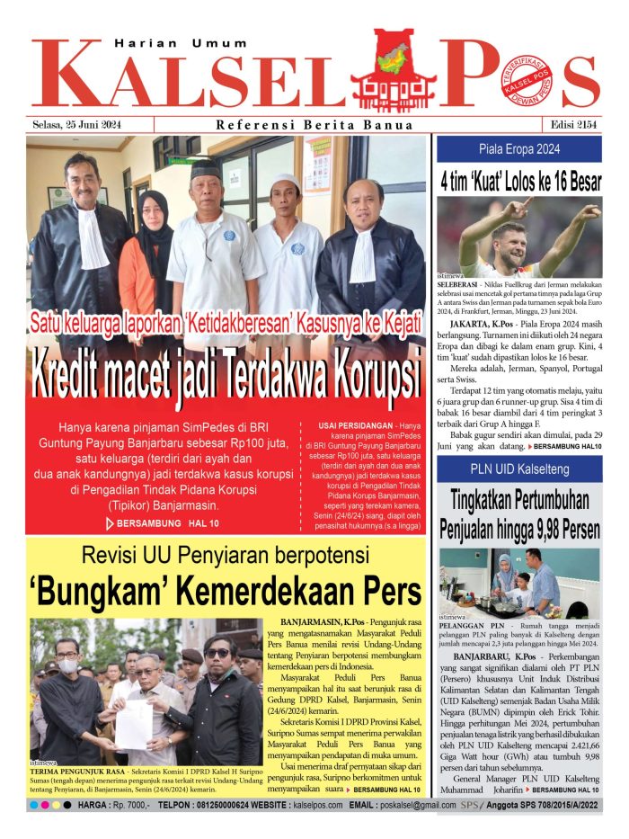 Satu keluarga laporkan ‘Ketidakberesan’ Kasusnya ke Kejatim Kredit macet jadi Terdakwa Korupsi kalselpos25 Juni 2024201 views Satu keluarga laporkan ‘Ketidakberesan’ Kasusnya ke Kejatim Kredit macet jadi Terdakwa Korupsi Revisi UU Penyiaran berpotensi, ‘Bungkam’ Kemerdekaan Pers Piala Eropa 2024, 4 tim ‘Kuat’ Lolos ke 16 Besar PLN UID Kalselteng, Tingkatkan Pertumbuhan Penjualan hingga 9,98 Persen Download Epaper Disini Bacaan LainnyaTerkait Korupsi Dana Desa Rp657 juta, Eks Kades di Kusan Hilir divonis 3 TahunDireksi baru PAM Bandarmasih terbentuk, Zulbadi dipercaya jadi DirutParkir Pasar Wadai ‘mencekik’, Pengendara Motor ditagih Rp10 Ribu Download Epaper Disini Kalsel Pos Berita Terkini, Kabar Terbaru Hari ini Banjarmasin Kalimantan Selatan dan Nasional Pos terkaitTerkait Korupsi Dana Desa Rp657 juta, Eks Kades di Kusan Hilir divonis 3 TahunDireksi baru PAM Bandarmasih terbentuk, Zulbadi dipercaya jadi DirutParkir Pasar Wadai ‘mencekik’, Pengendara Motor ditagih Rp10 Ribu
