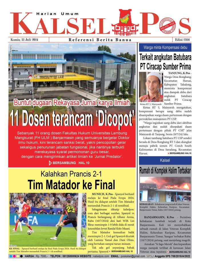 Buntut dugaan Rekayasa Jurnal karya Ilmiah, 11 Dosen terancam ‘Dicopot’ kalselpos11 Juli 202411 Juli 2024275 views Buntut dugaan Rekayasa Jurnal karya Ilmiah, 11 Dosen terancam ‘Dicopot’ Kalahkan Prancis 2-1, Tim Matador ke Final Warga minta Kompensasi debu, Terkait angkutan Batubara PT Ciracap Sumber Prima Rumah di Komplek Halim Terbakar Download Epaper Disini Bacaan LainnyaTerkait Korupsi Dana Desa Rp657 juta, Eks Kades di Kusan Hilir divonis 3 TahunDireksi baru PAM Bandarmasih terbentuk, Zulbadi dipercaya jadi DirutParkir Pasar Wadai ‘mencekik’, Pengendara Motor ditagih Rp10 Ribu Download Epaper Disini Kalsel Pos Berita Terkini, Kabar Terbaru Hari ini Banjarmasin Kalimantan Selatan dan Nasional Pos terkaitTerkait Korupsi Dana Desa Rp657 juta, Eks Kades di Kusan Hilir divonis 3 TahunDireksi baru PAM Bandarmasih terbentuk, Zulbadi dipercaya jadi DirutParkir Pasar Wadai ‘mencekik’, Pengendara Motor ditagih Rp10 Ribu