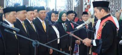 Pelantikan dan pengucapan sumpah dan jani dipimpin Ketua Pengadilan Negeri Kotabaru sekaligus pemasangan pin oleh Ketua PN Kotabaru secara simbolis kepada dua perwakilan anggota DPRD yang baru dilantik.