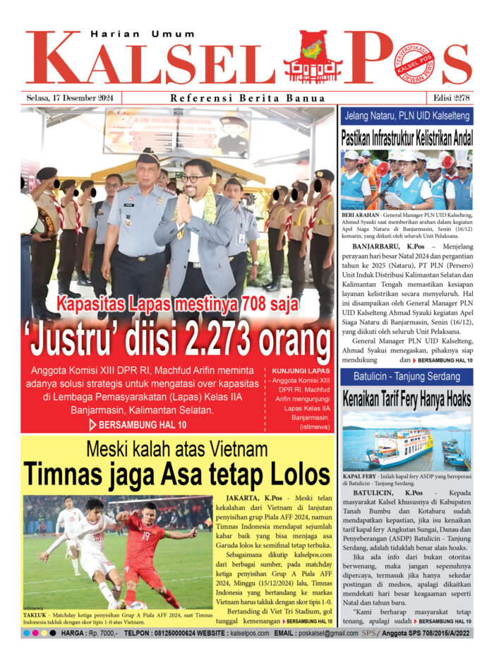 Kapasitas Lapas mestinya 708 saja,’Justru’ diisi 2.273 orang kalselpos17 Desember 2024547 views Kapasitas Lapas mestinya 708 saja, ‘Justru’ diisi 2.273 orang Meski kalah atas Vietnam, Timnas jaga Asa tetap Lolos Jelang Nataru, PLN UID Kalselteng, Pastikan Infrastruktur Kelistrikan Andal Batulicin – Tanjung Serdang. Kenaikan Tarif Fery Hanya Hoaks Download Epaper Disini Bacaan LainnyaTerkait Korupsi Dana Desa Rp657 juta, Eks Kades di Kusan Hilir divonis 3 TahunDireksi baru PAM Bandarmasih terbentuk, Zulbadi dipercaya jadi DirutParkir Pasar Wadai ‘mencekik’, Pengendara Motor ditagih Rp10 Ribu Download Epaper Disini Kalsel Pos Berita Terkini, Kabar Terbaru Hari ini Banjarmasin Kalimantan Selatan dan Nasional Pos terkaitTerkait Korupsi Dana Desa Rp657 juta, Eks Kades di Kusan Hilir divonis 3 TahunDireksi baru PAM Bandarmasih terbentuk, Zulbadi dipercaya jadi DirutParkir Pasar Wadai ‘mencekik’, Pengendara Motor ditagih Rp10 Ribu