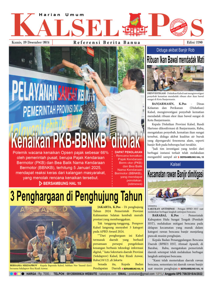 Kenaikan PKB-BBNKB ‘ditolak’ kalselpos19 Desember 2024551 views Kenaikan PKB-BBNKB ‘ditolak’ 3 Penghargaan di Penghujung Tahun Diduga akibat Banjir Rob, Ribuan Ikan Bawal mendadak Mati Kecamatan rawan Banjir dimitigasi Download Epaper Disini Bacaan LainnyaTerkait Korupsi Dana Desa Rp657 juta, Eks Kades di Kusan Hilir divonis 3 TahunDireksi baru PAM Bandarmasih terbentuk, Zulbadi dipercaya jadi DirutParkir Pasar Wadai ‘mencekik’, Pengendara Motor ditagih Rp10 Ribu Download Epaper Disini Kalsel Pos Berita Terkini, Kabar Terbaru Hari ini Banjarmasin Kalimantan Selatan dan Nasional Pos terkaitTerkait Korupsi Dana Desa Rp657 juta, Eks Kades di Kusan Hilir divonis 3 TahunDireksi baru PAM Bandarmasih terbentuk, Zulbadi dipercaya jadi DirutParkir Pasar Wadai ‘mencekik’, Pengendara Motor ditagih Rp10 Ribu