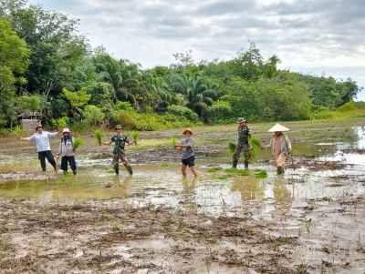 Kotabaru, kalselpos.com – Satuan Tugas (Satgas) Tentara Manunggal Membangun Desa (TMMD) ke-123 Kodim 1004/Kotabaru kembali mengajak warga masyarakat Desa Talusi untuk bersinergi dalam kegiatan penanaman padi. Kegiatan ini merupakan bagian dari program non-fisik TMMD yang bertujuan meningkatkan ketahanan pangan dan ekonomi warga setempat.