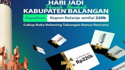 Syaratnya cukup buka rekening Tabungan Banua Rencana, sobat Bank Kalsel bisa dapat Kupon belanja senilai Rp220 ribu.