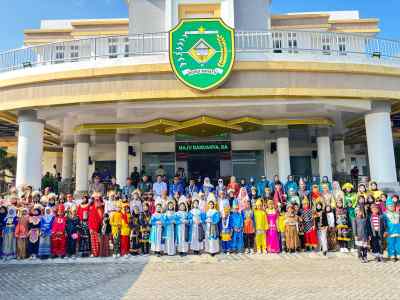 Sementara peserta upacara para pelajar berpakaian adat Nusantara, Dewan Guru Dan ASN Lingkungan Pemkab Tapin.