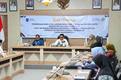 “Kami minta seluruh OPD segera menindaklanjuti temuan yang ada, agar tidak kembali muncul dalam Laporan Hasil Pemeriksaan (LHP) yang akan disampaikan akhir Mei mendatang,” tegas Wabup HSS Suriani, saat exit meeting pemeriksaan rinci atas Laporan Keuangan Pemerintah Daerah (LKPD) 2024, Jumat (9/5/2025) di aula Rakat Mufakat, Setda HSS.