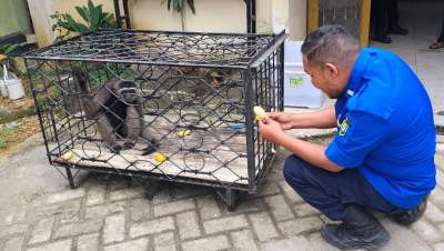 Sebelumya petugas Damkar mendapat informasi bahwa ada warga yang memelihara owa-owa.