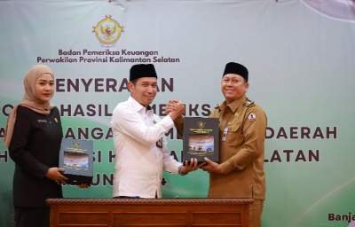 Marabahan, kalselpos.com – Kepala Badan Pemeriksa Keuangan (BPK) RI Perwakilan Kalsel Andriyanto, menyerahkan Laporan Hasil Pemeriksaan (LHP) atas Laporan Keuangan Pemerintah Daerah (LKPD) Kabupaten & Kota Se-Kalimantan Selatan Tahun 2024. Seluruh pemerintah kabupaten dan kota di Kalimantan Selatan meraih opini Wajar Tanpa Pengecualian (WTP) atas Laporan Keuangan Pemerintah Daerah (LKPD) Tahun 2024. Pada kesempatan itu berhadir Bupati dan Wakil Bupati Barito Kuala, Ketua DPRD Barito Kuala, Sekretaris Daerah, Sekretaris DPRD dan Kepala Dinas BPKAD. Penyerahan Laporan Hasil Pemeriksaan (LHP) dilaksanakan di Aula Badan Pemeriksa Keuangan (BPK) RI Perwakilan Kalsel, Banjarbaru, Senin (26/05)