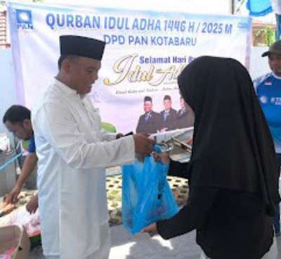 “Saya selaku Dewan Pimpinan Daerah (DPD) PAN Kkotabaru melaksanakan menyembelih 2 dua ekor sapi qurban, yang mana daginynya akan dibagikan kepada masyarakat,” ujarnya.