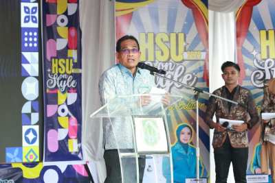 Kemudian Ketua TP PKK HSU Hj Murniati Sahrujani, Kepala Diskuperindag HSU, Kamaruddin serta tamu undangan lainnya.