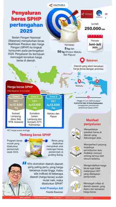 kalselpos.com – Badan Pangan Nasional (Bapanas) menyalurkan beras Stabilisasi Pasokan dan Harga Pangan (SPHP) ke tingkat konsumen pada pertengahan 2025. Penyaluran itu bertujuan mencegah kenaikan harga beras di daerah.