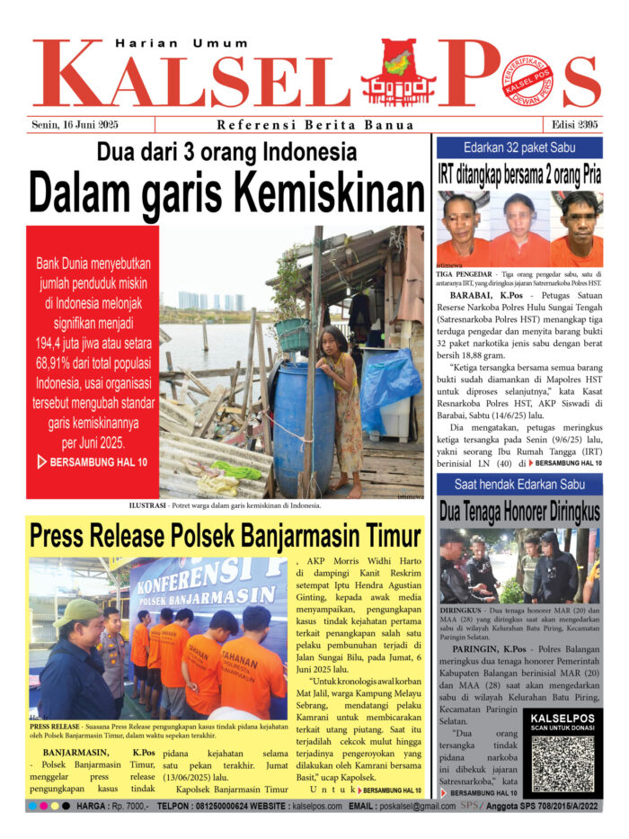 Dalam garis Kemiskinan, Dua dari 3 orang Indonesia Zainal15 Juni 202515 Juni 2025429 views Dalam garis Kemiskinan, Dua dari 3 orang Indonesia Press Release Polsek Banjarmasin Timur IRT ditangkap bersama 2 orang Pria, Edarkan 32 paket Sabu Dua Tenaga Honorer Diringkus, Saat hendak Edarkan Sabu Download Epaper Disini Bacaan LainnyaTerkait Korupsi Dana Desa Rp657 juta, Eks Kades di Kusan Hilir divonis 3 TahunDireksi baru PAM Bandarmasih terbentuk, Zulbadi dipercaya jadi DirutParkir Pasar Wadai ‘mencekik’, Pengendara Motor ditagih Rp10 Ribu Download Epaper Disini Kalsel Pos Berita Terkini, Kabar Terbaru Hari ini Banjarmasin Kalimantan Selatan dan Nasional Pos terkaitTerkait Korupsi Dana Desa Rp657 juta, Eks Kades di Kusan Hilir divonis 3 TahunDireksi baru PAM Bandarmasih terbentuk, Zulbadi dipercaya jadi DirutParkir Pasar Wadai ‘mencekik’, Pengendara Motor ditagih Rp10 Ribu