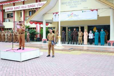 Upacara ini dipimpin langsung Bupati Kabupaten HSU H Sahrujani dan diikuti sejumlah Kepala SKPD dilingkungan Pemkab HSU, Forkopimda serta tamu undangan.