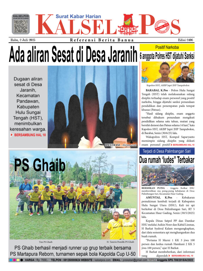 Ada aliran Sesat di Desa Jaranih Zainal1 Juli 2025741 views Ada aliran Sesat di Desa Jaranih 6 anggota Polres HST dijatuhi Sanksi, Positif Narkoba Dua rumah ‘ludes” Terbakar, Terjadi di Desa Palimbangan Sari Download Epaper PDF Disini < Bacaan LainnyaTerkait Korupsi Dana Desa Rp657 juta, Eks Kades di Kusan Hilir divonis 3 TahunDireksi baru PAM Bandarmasih terbentuk, Zulbadi dipercaya jadi DirutParkir Pasar Wadai ‘mencekik’, Pengendara Motor ditagih Rp10 Ribu /h4> Download Epaper PDF Disini Kalsel Pos Berita Terkini, Kabar Terbaru Hari ini Banjarmasin Kalimantan Selatan dan Nasional Pos terkaitTerkait Korupsi Dana Desa Rp657 juta, Eks Kades di Kusan Hilir divonis 3 TahunDireksi baru PAM Bandarmasih terbentuk, Zulbadi dipercaya jadi DirutParkir Pasar Wadai ‘mencekik’, Pengendara Motor ditagih Rp10 Ribu