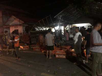 Akibat kejadian ini ayam yang diangkut berhamburan dijalan, sopir dan kernet juga terjepit tidak bisa keluar harus dibantu warga dan Relawan Damkar.
