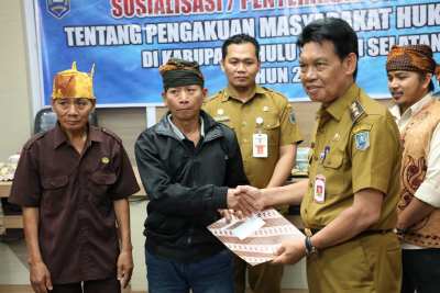 SK pengakuan masyarakat hukum adat tersebut serahkan Wakil Bupati (Wabup) HSS Suriani kepada masyarakat masing-masing kepala Balai adat, Senin (7/7/2025) di Aula Rakat Mufakat, Setda HSS.