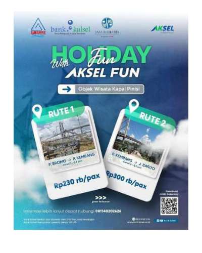 Kabar baiknya, tiket wisata kapal Pinisi kini dapat dibeli secara mudah melalui aplikasi Aksel milik Bank Kalsel. Caranya pun praktis: pengguna hanya perlu membuka aplikasi Aksel, memilih menu Aksel Fun, kemudian memilih destinasi wisata “Kapal Wisata Pinisi – BRC”, menentukan jadwal dan rute, lalu melanjutkan hingga konfirmasi pembayaran.