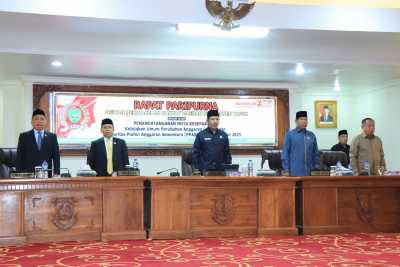 Rapat Paripurna Dipimpin Ketua DPRD Tapin Achmad Riduan Syah didampingi Wakil Ketua H Hairuji dan H Midpay Syahbani mendengarkan penyampaian Pemerintah Kabupaten Tapin terhadap KUA Dan PPAS Tahun anggaran 2026.