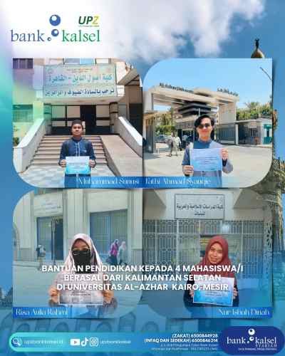 Banjarmasin, kalselpos.com – Unit Pengumpul Zakat (UPZ) Bank Kalsel kembali menunjukkan komitmennya dalam mendukung pendidikan generasi muda. Kali ini, UPZ menyalurkan bantuan pendidikan kepada empat mahasiswa asal Kalsel dari keluarga prasejahtera, yakni Muhammad Sunusi, Fathi Ahmad Syauqie, Risa Aulia Rahmi, dan Nur Isbah Dinah.