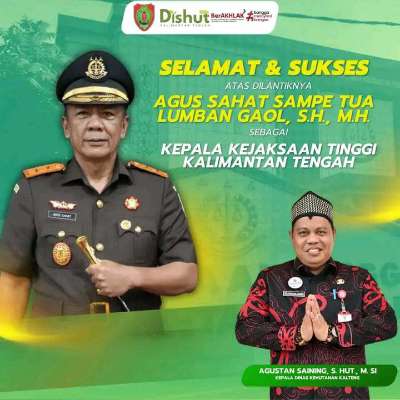 Kepala Dinas Kehutanan Provinsi Kalimantan Tengah, Agustan Saining, S.Hut., M.Si., mengucapkan Selamat dan Sukse atas dilantiknya Agus Sahat Sampe Tua Lumban Gaol, S.H., M.H., sebagai Kepala Kejaksaan Tinggi Kalimantan Tengah
