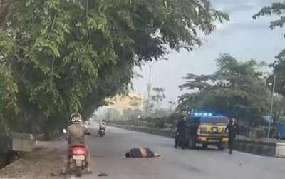 Diduga, ketika akan putar balik, korban kemudian dihantam mobil polisi yang melaju dengan kecepatan tinggi dari arah sama.
