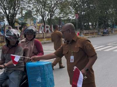 Kegiatan ini dipimpin Kabid Ideologi Kesbangpol, Rela Radhani, di depan jalan Siring Laut, Selasa (05/08/2025).