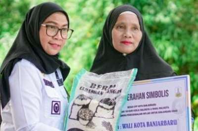 Dalam kesempatan yang sama Wali Kota juga bagikan bantuan berupa bahan pangan serta sarana prasarana pertanian bagi para kelompok tani wialayah Kecamatan Landasan Ulin Utara.