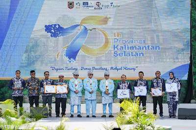 Piagam penghargaan sendiri diserahkan oleh Gubernur Kalsel H Muhiddin, didampingi Wakil Gubernur Kalsel H Hasnuryadi Sulaiman serta Sekda Provinsi Kalsel Muhammad Syarifuddin.