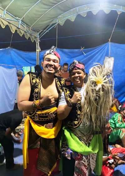 Malam harinya, ia terlihat ikut serta menjadi salah satu pemain dalam pertunjukan seni budaya prajuritan, yang dalam bahasa Jawa dikenal dengan sebutan Ndengtek’an.