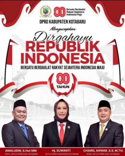 Kotabaru, Kalselpos.com – DPRD Kabupaten Kotabaru mengucapkan selamat Hari Ulang Tahun (HUT) ke-80 Republik Indonesia yang jatuh pada 17 Agustus 2025. Yang mana tema kali ini adalah semangat persatuan dan kedaulatan rakyat menuju Indonesia maju.