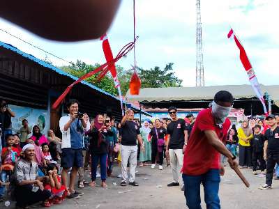Ratusan warga tumpah ruah mengikuti pesta rakyat yang digelar Relawan 08. Mulai dari panjat pinang, balap karung, memukul kantong plastik berisi air, hingga tarik tambang, semuanya disambut dengan antusiasme tinggi.