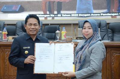 Persetujuan tersebut dilakukan langsung oleh Bupati Balangan, H Abdul Hadi bersama Ketua DPRD Balangan, Hj Linda Wati, didampingi Wakil Ketua DPRD, Muhammad Rizkan.