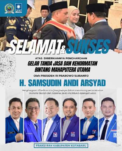 Kotabaru, Kalselpos.com – Luar biasa, penyematan Bintang Mahaputera Utama kepada salah seorang pengusaha yaitu, H Samsudin Andi Arsyad, membuat bangga sejumlah pihak, termasuk dari anggota DPRD Kotabaru khususnya fraksi PAN, Senin (25/8/25).