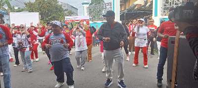 Tidak hanya membuka acara, Sekda juga ikut berjalan santai bersama warga sambil menikmati udara dipagi hari yang kemudian dilanjutkan dengan senam sehat di depan Kantor desa.