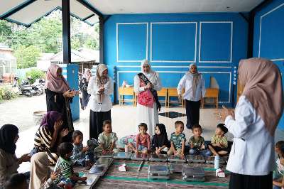 Dalam peninjauan pelaksanaam program MBG tersebut, Bunda PAUD Kabupaten HSS Tata Syafrudin Noor, berbaur dan menyaksikan anak-anak makan dari program Presiden Prabowo.