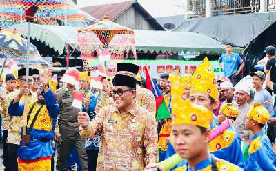 Amuntai, kalselpos.com – Bupati Kabupaten Hulu Sungai Utara (HSU) H Sahrujani menghadiri Pawai Ta’aruf, di Kecamatan Danau Panggang, Rabu (10/9/2025).