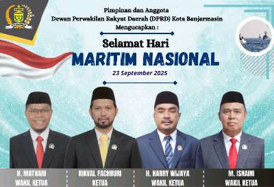 Pimpinan dan Anggota DPRD Kota Banjarmasin Mengucapkan: Selamat Hari Maritim Nasional 23 September 2025 winda kalselpos13 September 2025379 views Pimpinan dan Anggota DPRD Kota Banjarmasin Mengucapkan: Selamat Hari Maritim NasionalBacaan LainnyaBupati HSS Buka Puasa Bersama BPK dan Relawan BencanaSafari Ramadan, Wabup Suriani salurkan Bansos LKSAUnda Absori Resmi Menjabat Sekda Definitif Tapin 23 September 2025 Pos terkaitBupati HSS Buka Puasa Bersama BPK dan Relawan BencanaSafari Ramadan, Wabup Suriani salurkan Bansos LKSABupati Kotabaru serahkan 172 Paket Sembako kepada Petugas Lapangan DLH