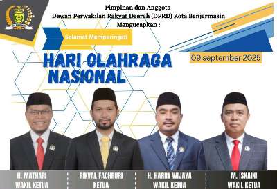 Pimpinan dan Anggota DPRD Kota Banjarmasin Mengucapkan: Selamat Hari Olahraga Nasional winda kalselpos13 September 202524 Desember 2025274 views Pimpinan dan Anggota DPRD Kota Banjarmasin Mengucapkan:Bacaan LainnyaRSUD Jaraga Sasameh Fokus Persiapkan Re-Akreditasi 2026TP PKK HSU Bagikan 1000 Paket TakjilBupati HSS Buka Puasa Bersama BPK dan Relawan Bencana Selamat Hari Olahraga Nasional 9 September 2025 Pos terkaitTP PKK HSU Bagikan 1000 Paket TakjilBupati HSS Buka Puasa Bersama BPK dan Relawan BencanaSafari Ramadan, Wabup Suriani salurkan Bansos LKSA
