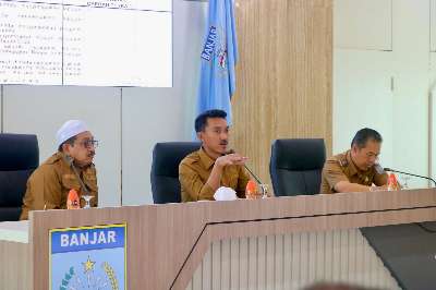 Rakor tersebut turut dihadiri Wakil Bupati Banjar Habib Idrus Al Habsyi, Pj Sekda Banjar H Ikhwansyah, para staf ahli, asisten, kepala SKPD, Kabag Setda Banjar, serta Direktur Perusda.