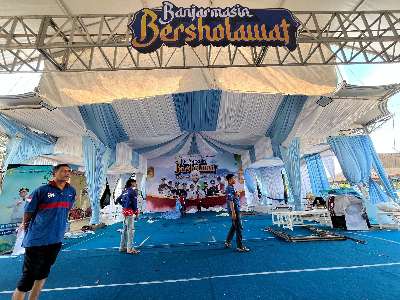 “Alhamdulillah, persiapan sudah 99 persen. Tenda besar telah berdiri kokoh di halaman Balai Kota untuk menampung ribuan jemaah,” ujarnya, Kamis (25/9/2025).