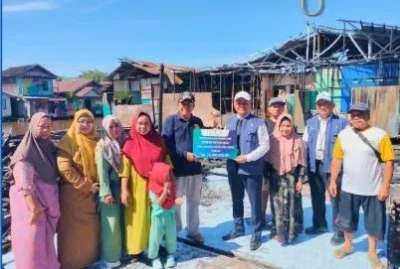 Bantuan senilai Rp15 juta diserahkan secara simbolis oleh Kepala Cabang Utama Bank Kalsel, Suriadi, kepada perwakilan warga yang menjadi korban.